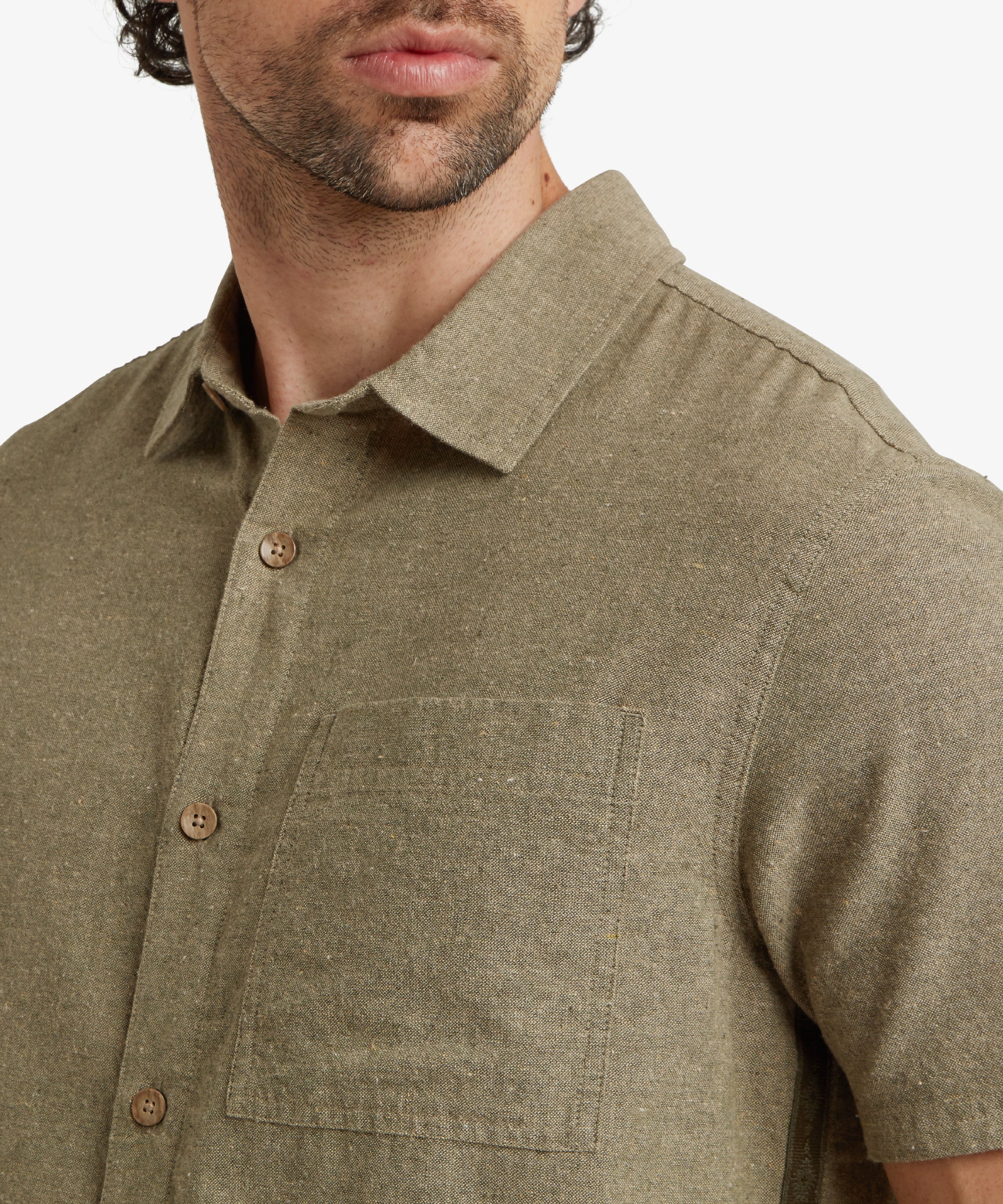 The Daha Short Sleeve Shirt is the definition of conscious consumption, creating new yarn from like-colored, post-industrial cotton. Blended with recycled polyester for breathability and moisture management, this shirt is simple, stylish, and practical, ideal for travel and daily wear alike. Cut for comfort and mobility with a classic fit, set-in sleeves, forward set shoulder seams, and a pleated back yoke, the shirt is ready for anything. Unadorned yet far from plain, thoughtful finishing detailing with faux wood buttons, and our exclusive taping at the side seams, ensures elevated, versatile wear. Low impact design for impactful dressing, the Daha Short Sleeve Shirt offers the perfect finish to any outfit.