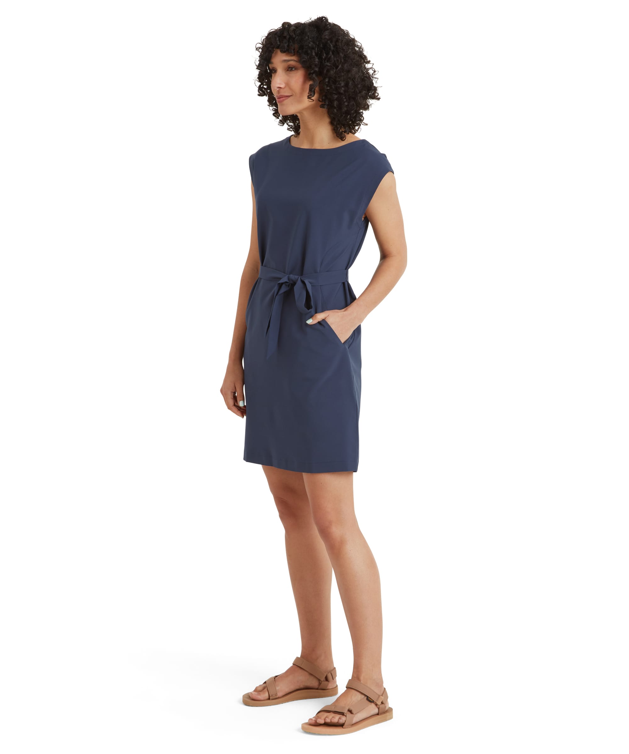 For long days of travel and adventure, the Sajilo Travel Dress blends comfort, practicality, and style. Made from quick dry, lightweight, recycled polyester, the mechanical stretch fabric ensures unimpeded mobility, whilst wicking excess moisture for the skin for lasting dryness. Cut with a scoop neckline, cap sleeves, and a fabric tie waist belt, the dress delivers a flattering, feminine silhouette. Perfect for on-the-go, a hidden zip secure pocket provides safe storage for small essentials. The ultimate summer dress, the Sajilo Travel Dress is stylish functionality at its best.