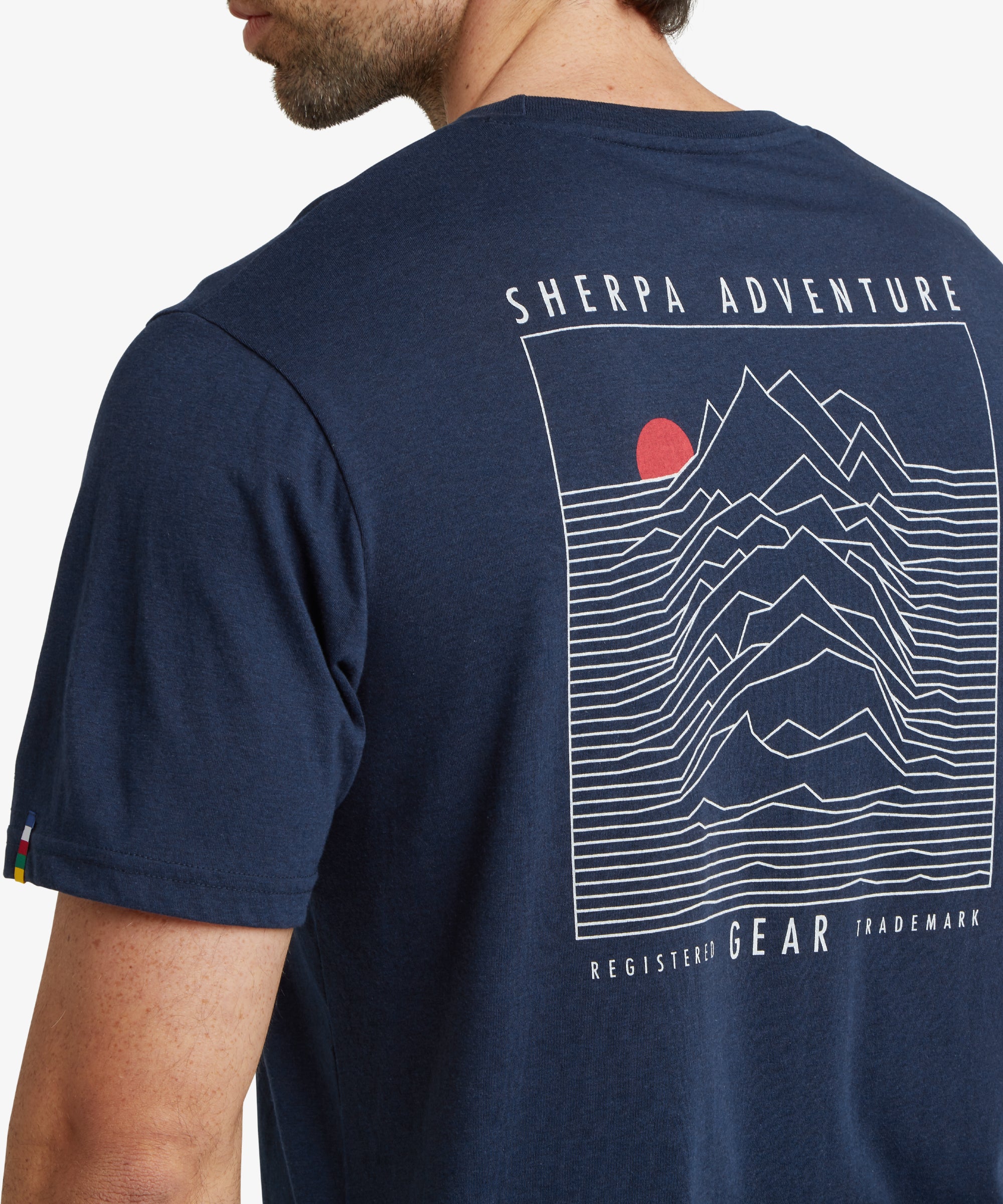 Whether taking the trail less traveled or exploring the urban jungle, the Bali Terrain Tee does it all. Made from a durable blend of recycled polyester, Tencel™, and organic cotton, this soft-to-skin, quick-drying, moisture wicking t-shirt ensures versatility and lasting comfort. The classic crew neck and short set-in sleeves, enable effortless styling with pants or shorts. Sherpa's signature prayer flag tape at the back of the neck evokes Nepali heritage, providing a clean, stylish finish, and a practical solution to prevent over-stretching. Featuring a large Himalayan inspired graphic on the back, with a small endless knot on the front left chest, there is no beginning or end to the adventure, in the Bali Terrain Tee.