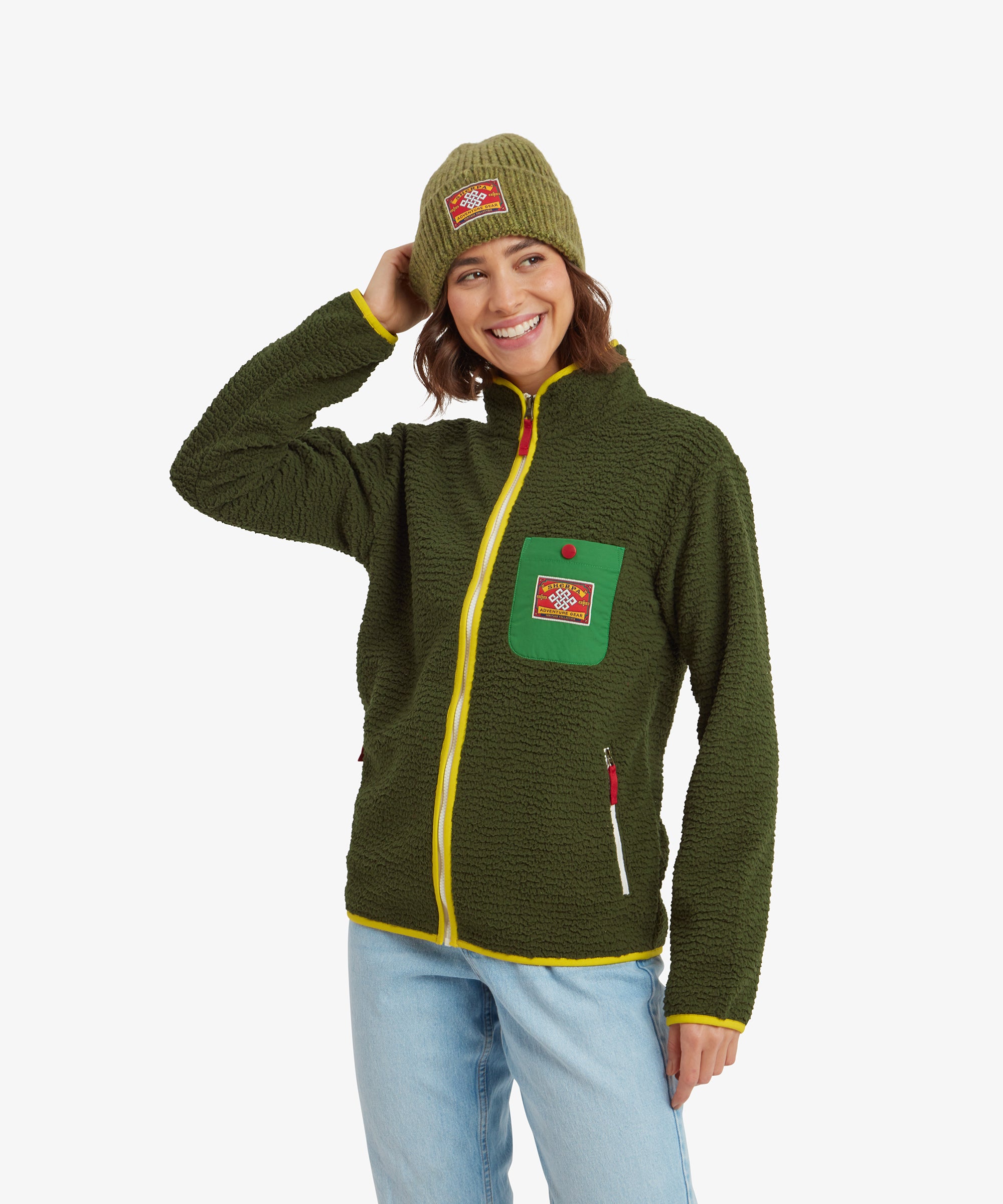 The Tarcho Full Zip Fleece is a warm, durable layer inspired by the vibrant Tibetan prayer flags that line Himalayan peaks known as Tarcho. Made in Nepal, this fleece combines heritage with technical refinement. Crafted from 100% recycled polyester yarn with an anti-pilling, moisture-wicking finish, and independently certified by OEKO-TEX® for safe and responsible production, it's designed to look good and feel good to wear. At 200 GSM, this fleece delivers dependable warmth and long-lasting comfort. A classic fit with set-in sleeves ensures a clean silhouette and promotes ease of movement alongside the full zip design which allows for additional ventilation and easy layering. This is a classic yet bold fleece, the perfect companion for adventures into the colder seasons.