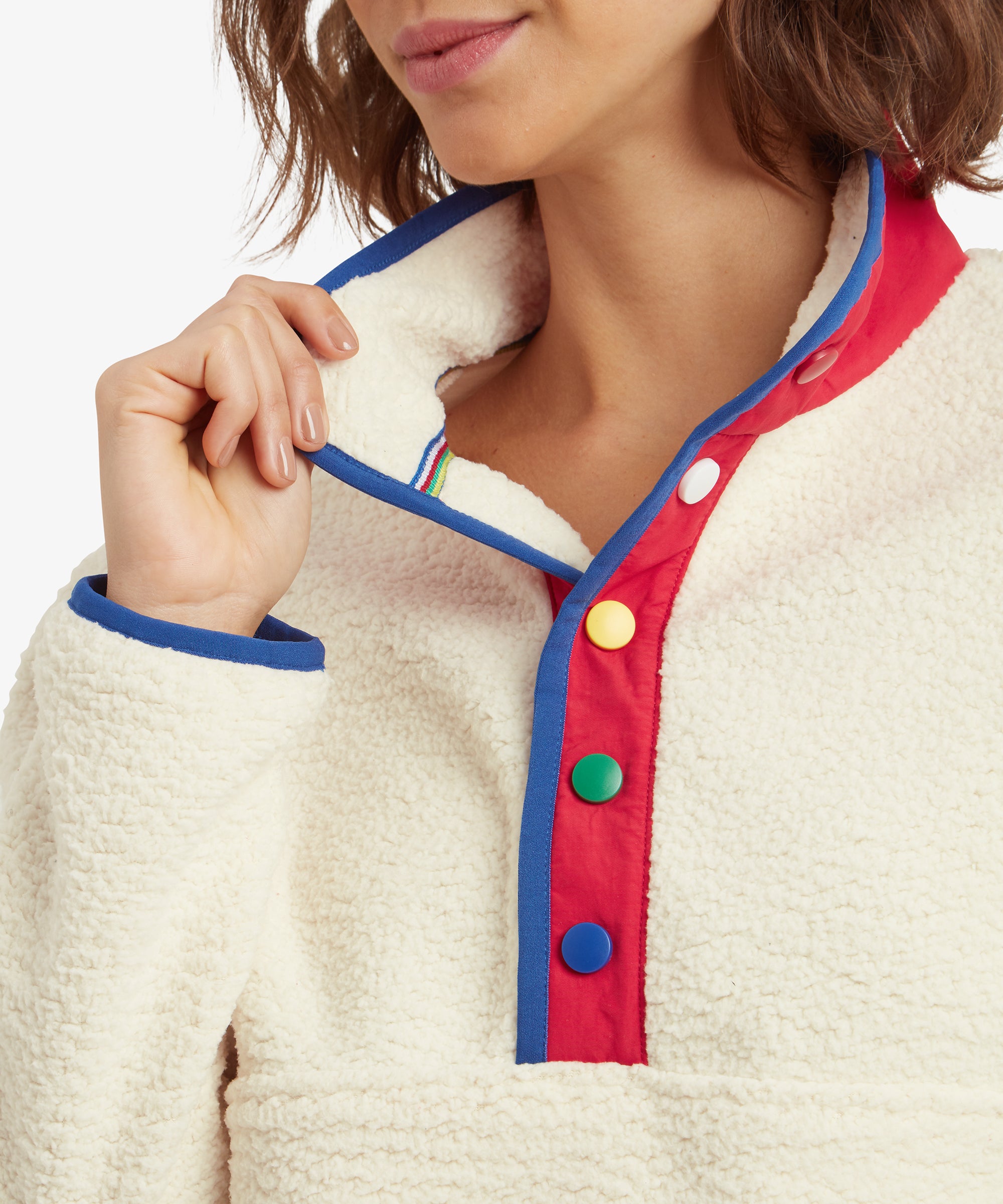 The Tarcho Quarter Snap Pullover is a classic fit fleece built for warmth, versatility, and meaningful design. Inspired by the colors of traditional Tibetan prayer flags, this pullover is part of the Tarcho Collection, designed and made in Nepal. This fleece has an anti-pilling, moisture wicking finish making it ideal for outdoor activities. The contrast woven placket and snap-closure collar complete the look with five poppers reflecting the five colors of Tarcho, a signature design touch from this collection. Made from 100% recycled polyester and independently certified by OEKO-TEX® for safe and responsible production.